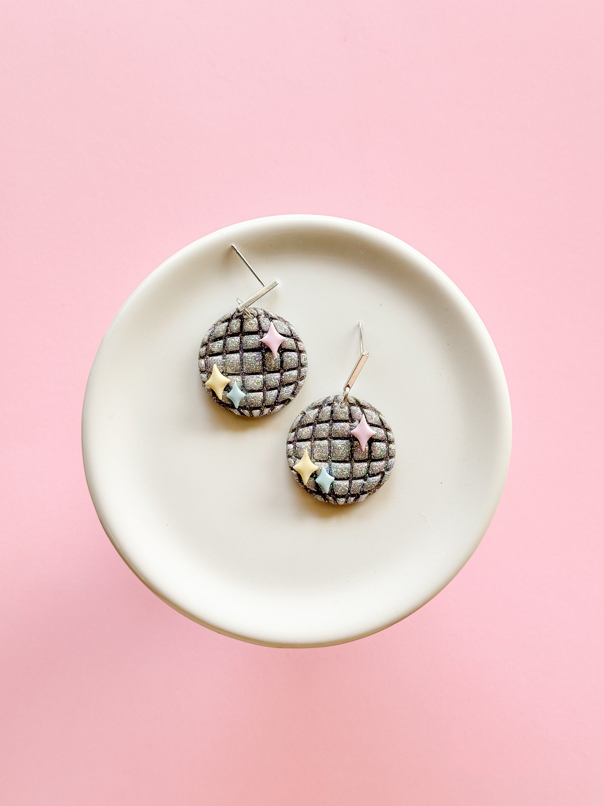 Our earrings are handmade using high quality polymer clay. Stud earrings are attached to a hypoallergenic stainless steel post. All other hardware (i.e., ball posts, fish-hooks, etc.) are sourced and quality tested. These sourced pieces are made of high quality 18k gold plated stainless steel OR stainless steel - happy ears for everyone!