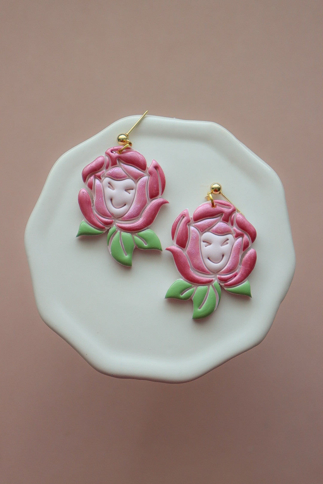 Our earrings are handmade using high quality polymer clay. Stud earrings are attached to a hypoallergenic stainless steel post. All other hardware (i.e., ball posts, fish-hooks, etc.) are sourced and quality tested. These sourced pieces are made of high quality 18k gold plated stainless steel OR stainless steel - happy ears for everyone!