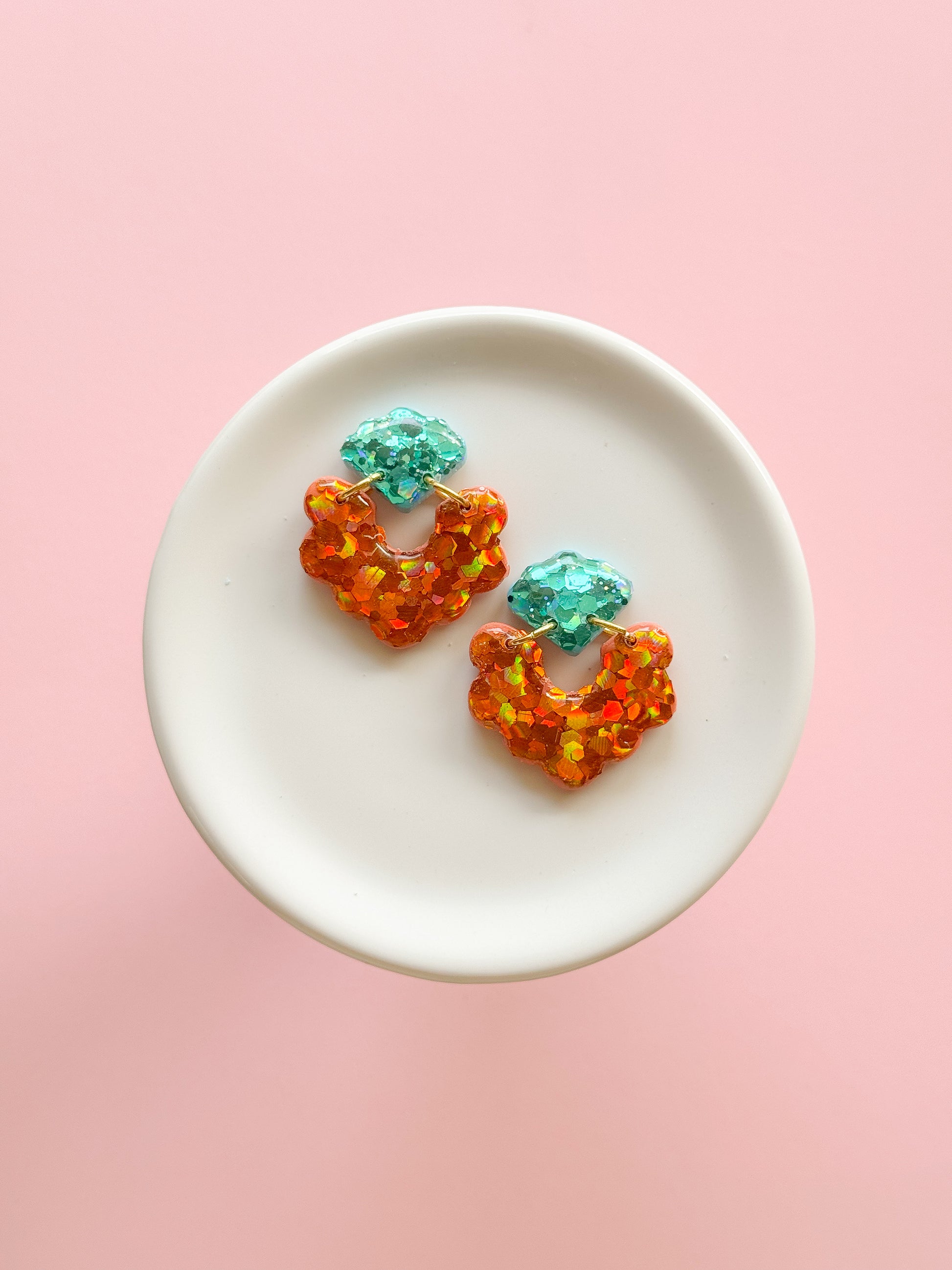 - Even though earrings that contain acrylic paint that are not coated with resin, but contain a matte epoxy, it is *always* best to avoid any water or chemicals to the treated area.
