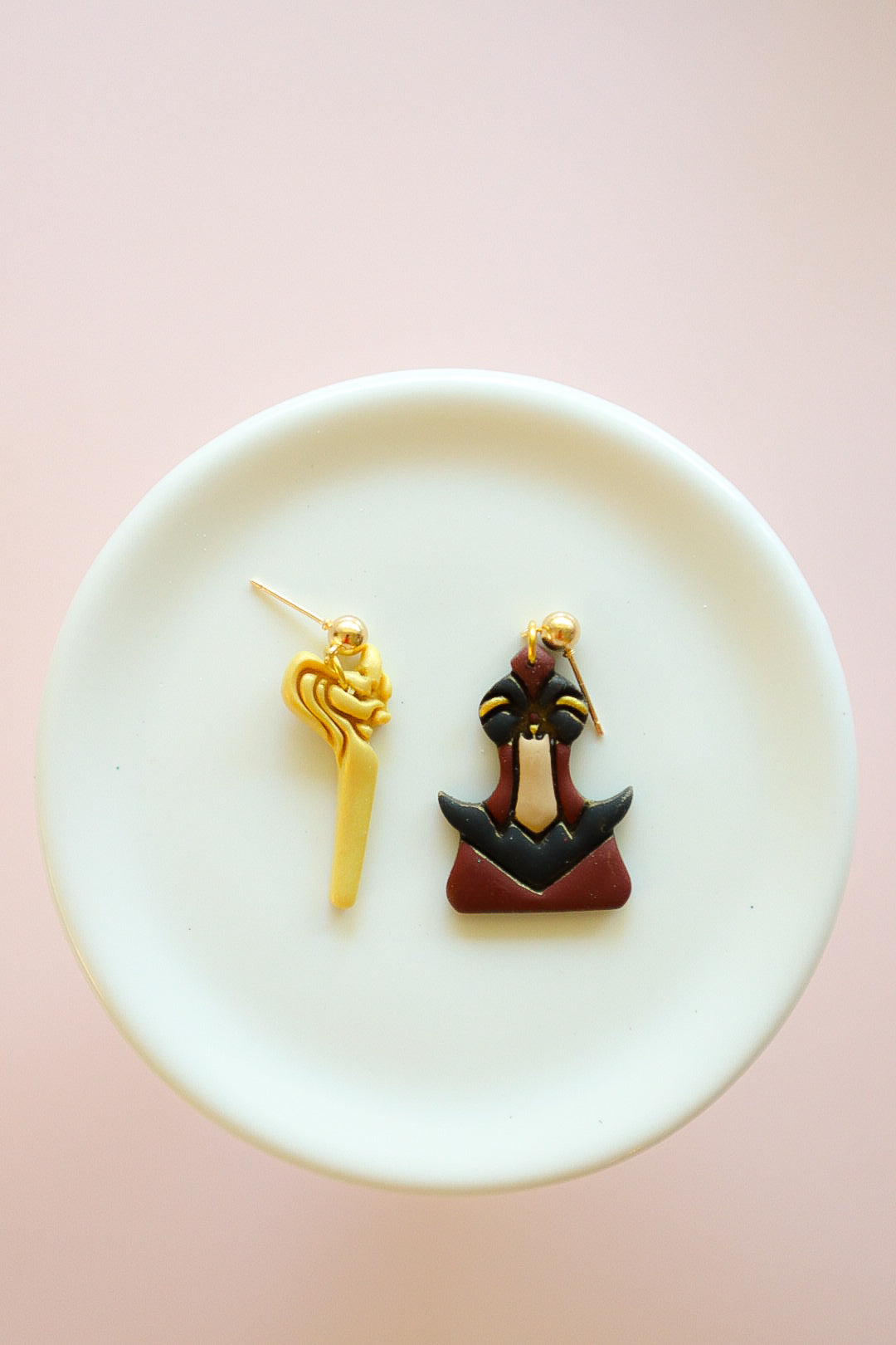 Our earrings are handmade using high quality polymer clay. Stud earrings are attached to a hypoallergenic stainless steel post. All other hardware (i.e., ball posts, fish-hooks, etc.) are sourced and quality tested. These sourced pieces are made of high quality 18k gold plated stainless steel OR stainless steel - happy ears for everyone!